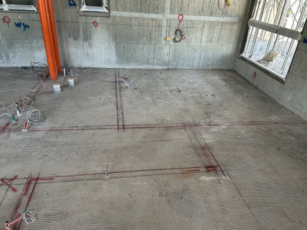 - 依施工圖繪製牆體位置,對準柱、樑、樓板等基準線放樣。